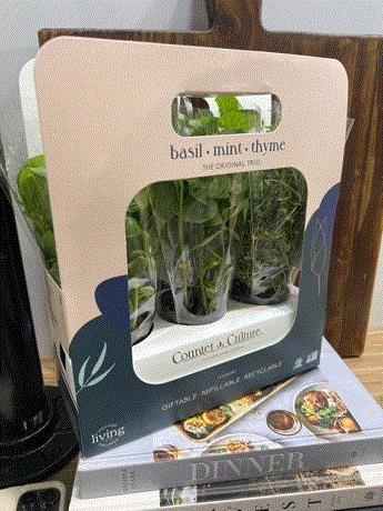 I really liked this herb trio, called Counter Culture, from North Shore Living, a hydroponic producer that sells some of its product potted and others with the roots attached. This is a nice grab-and-go potted herb product for retail that consumers can keep on their counter and snip from while cooking. It comes in packs of three and contains the top herbs that consumers buy most often—in this case, basil, mint and thyme.