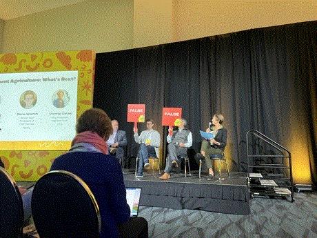 I sat in on another talk about indoor produce growing specifically, where IFPA Vice President of Innovation Vonnie Estes queried her panelists about the state of CEA. A few very interesting notes came out of this panel, including the idea that consistent messaging across indoor production would help everyone.