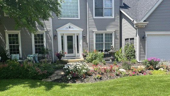 A Mill Creek home. Pots, plus annuals in the ground. But no hanging baskets.