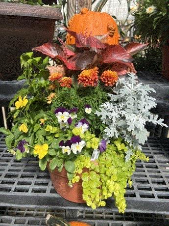 Their plant material was beautiful and they offered unique fall planters like the ones shown here. Mums are great, but sometimes shoppers are looking for unique mixes.
