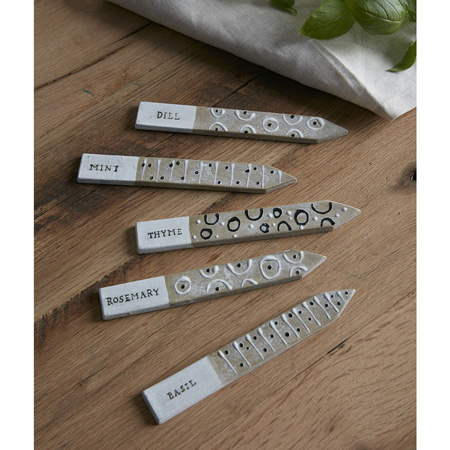 Accent Decor’s Garnish Herb Sticks are stylish and perfect for the garden. These ceramic herb sticks feature adorable hand-painted designs for your Rosemary, Thyme, Basil, Dill and Mint herbs.