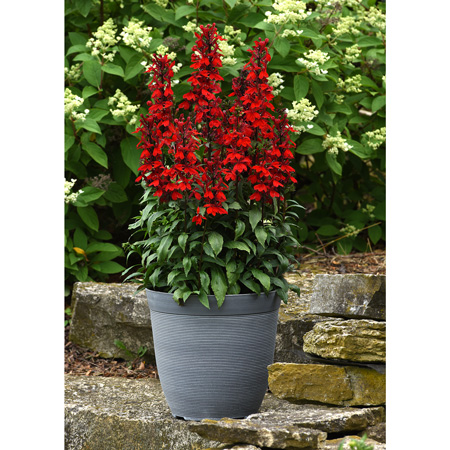 Perennial lobelia is a pretty summer option for beds and borders. The Starship series from Kieft Seed loves the higher temperatures, humidity and moisture. Its tall spikes attract hummingbirds and butterflies. Available in five colors and hardy to Zone 6a. Pictured: Lobelia Starship.